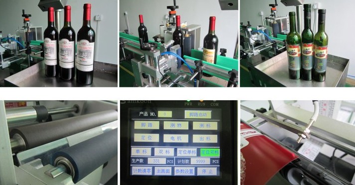 半自動酒瓶貼標(biāo)機(jī)工作流程: